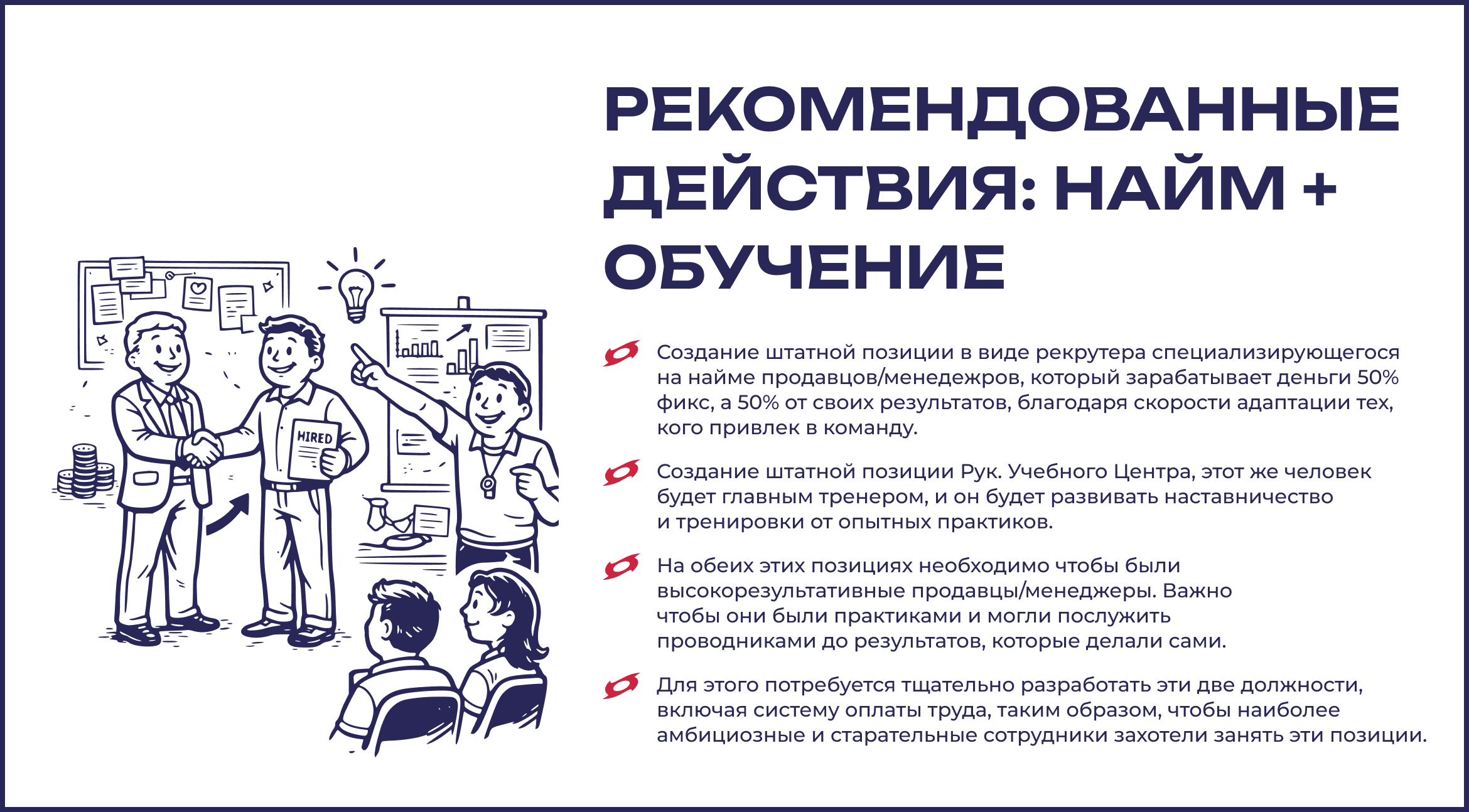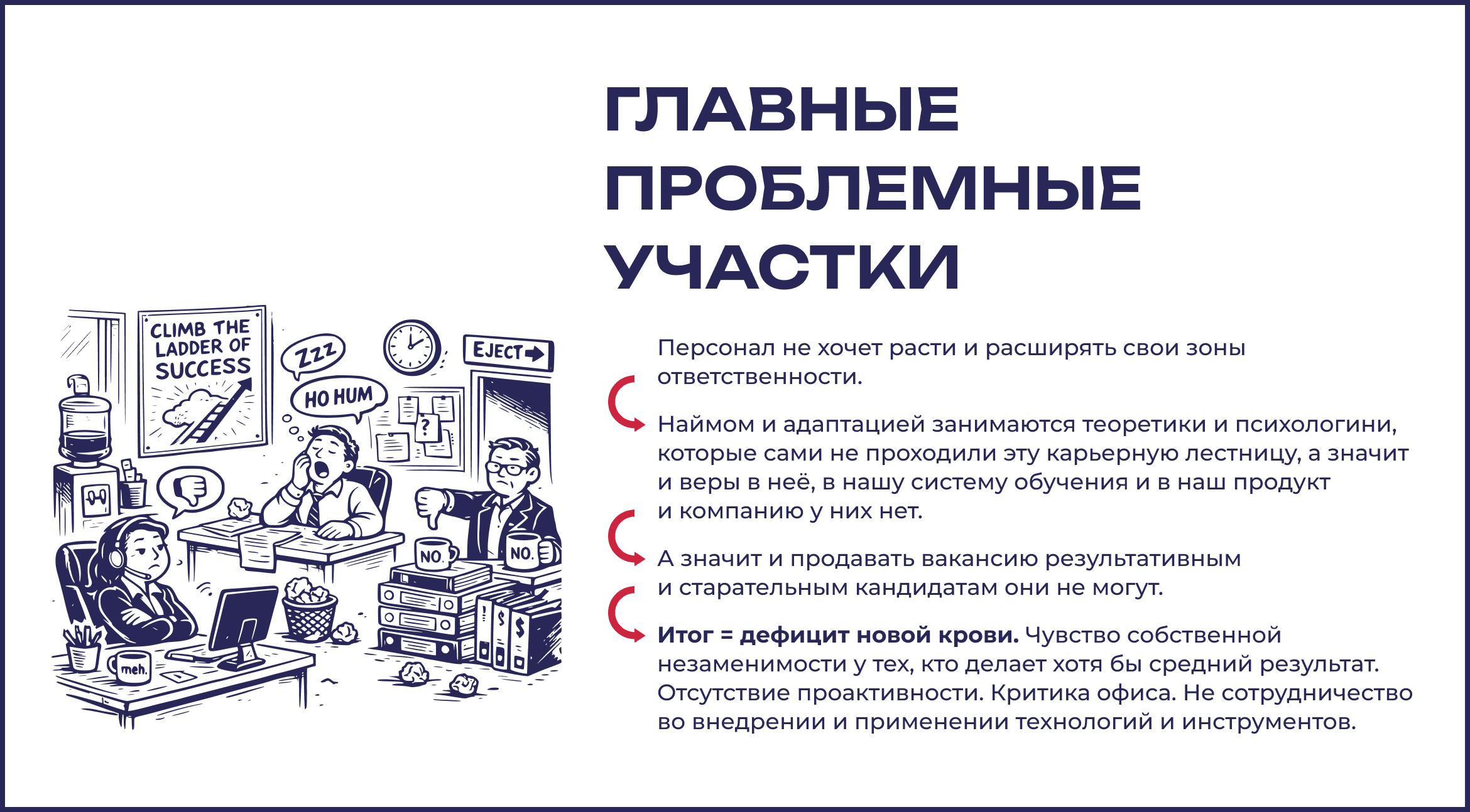 Нужна технология найма, адаптация менеджеров и крутые Маркетинговые инструменты
