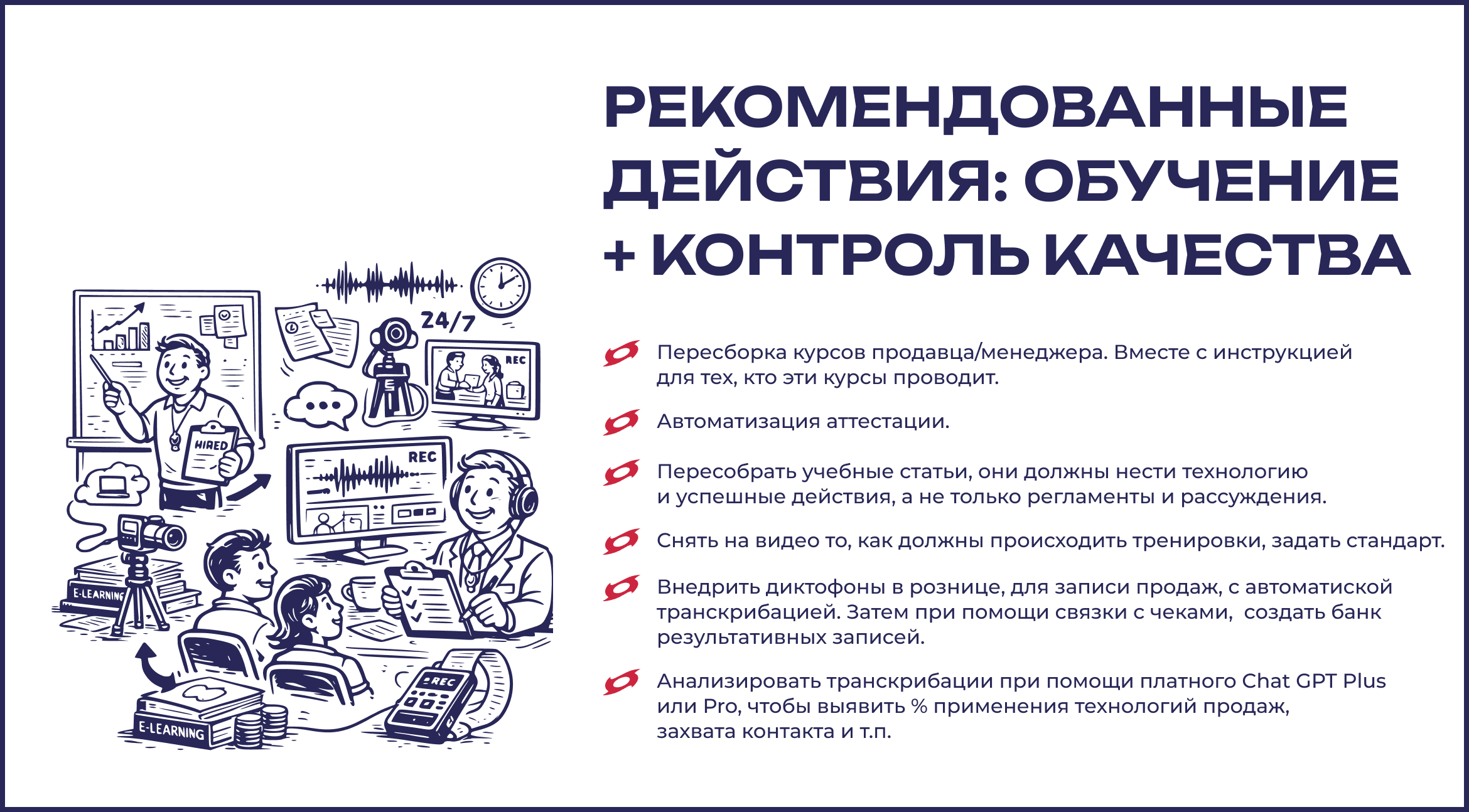 По разработанным материалам налажено обучение, проведение тренировок, наставничество, контроль качества работы и применения технологий работы